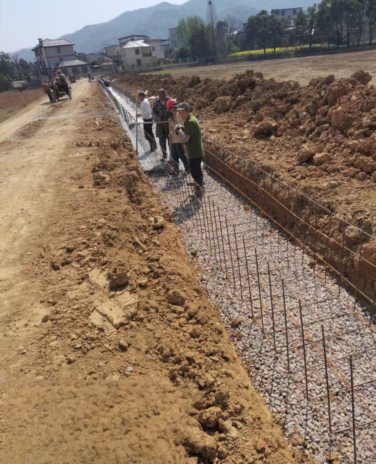 并且,為進一步維護田間各設(shè)施運轉(zhuǎn),新建及維修千米田間道路,便利農(nóng)機通行。通過修建防護擋土墻并栽種紅葉石楠維護農(nóng)田生態(tài);架設(shè)百米輸電線路,保障田間電力供應(yīng)。